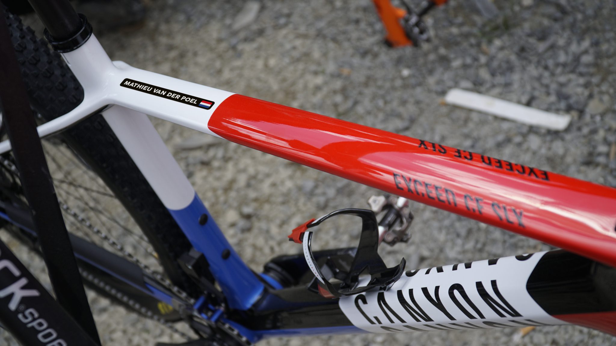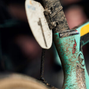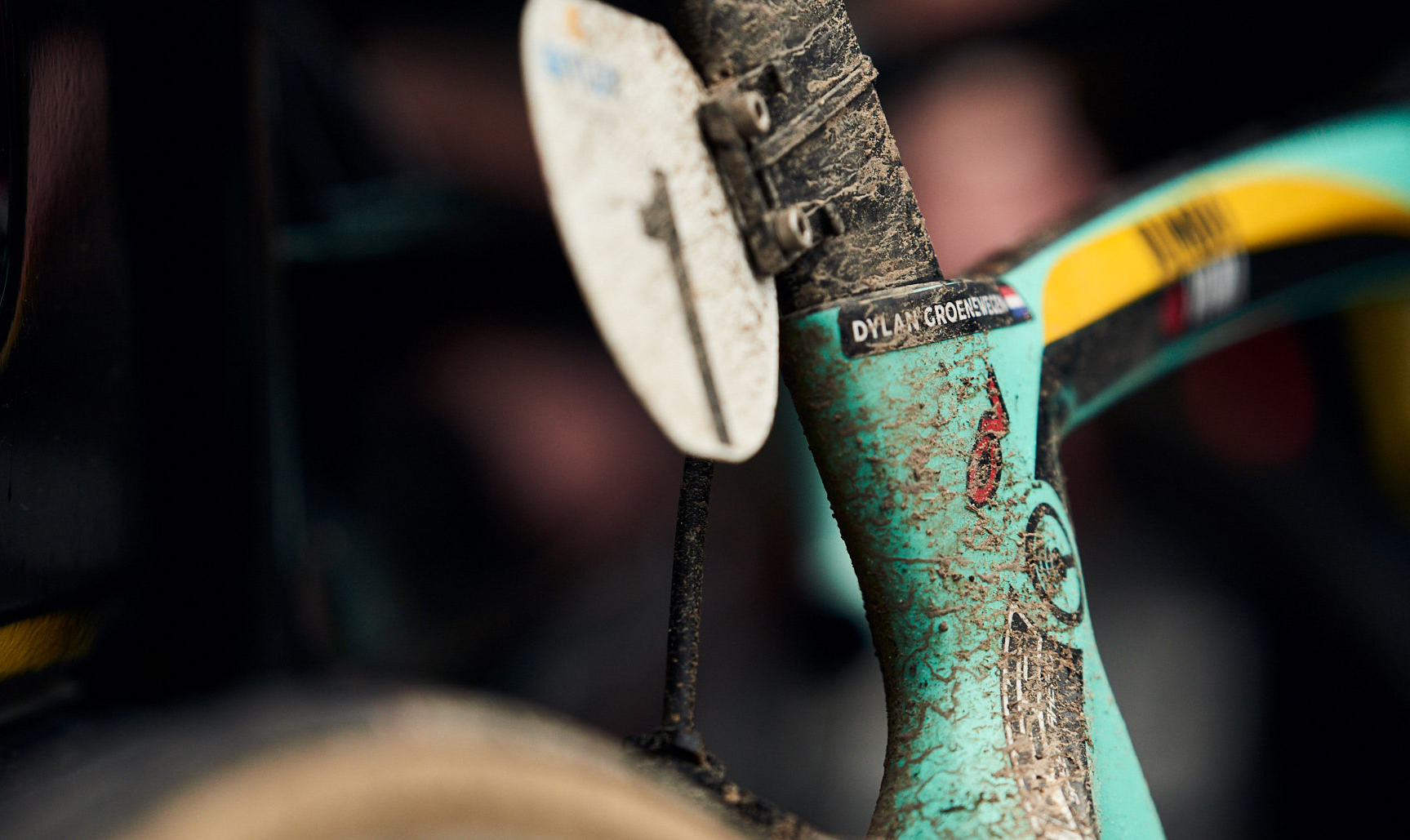 Pros like Mathieu van der Poel, Ceylin del Carmen Alvarado, Dylan Groenewegen, Steven Kruijswijk and Primož Roglič cycle around with the name stickers on their frame, helmet and wheels.