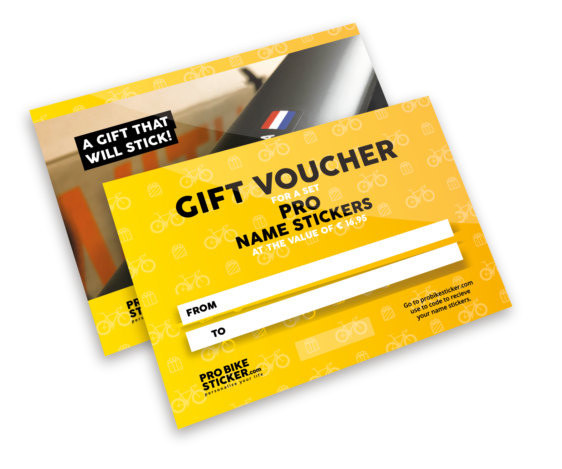 Pro Bike Sticker offers you the possibility to personalise your bike or your gear with a unique name sticker with your name, flag and colour of choice!